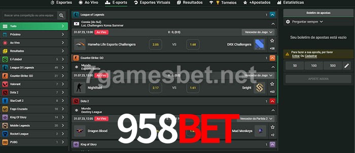 O 958Bet oferece uma grande seleção de opções de apostas em e-sports com probabilidades competitivas